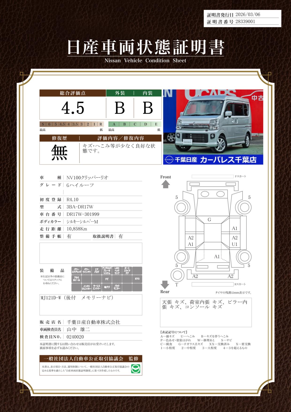 日産車両状態証明