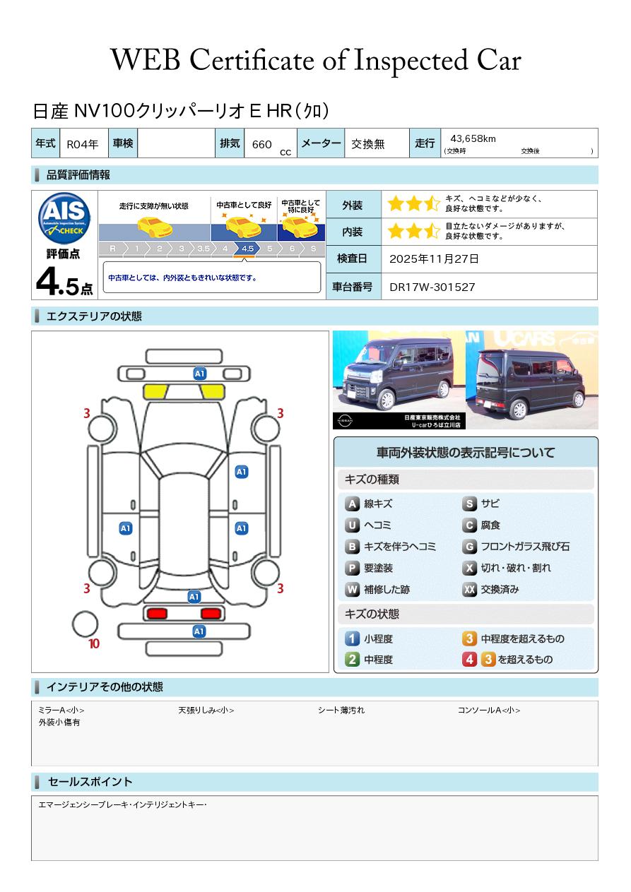 現状車検切れの状態ですが、ご成約時に新しく車検を実施します。車検費用は車両価格に含まれています。