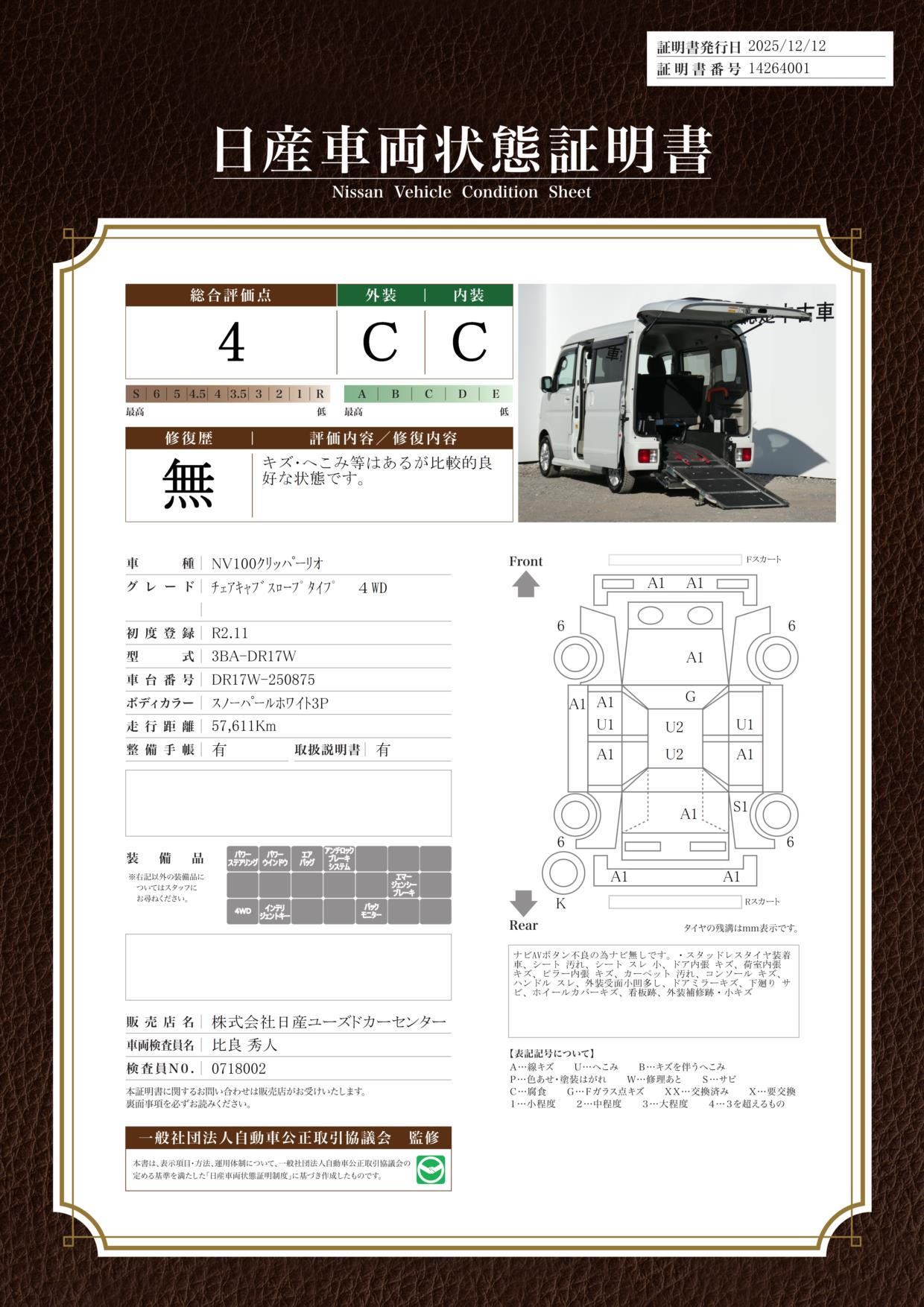 チェアキャブスロープタイプ・バックビューモニター・運転席シートヒーター・全国どこでも納車できます!お気軽にお問い合わせください。ご来店の際は電話で在庫確認の上ご来場下さい。