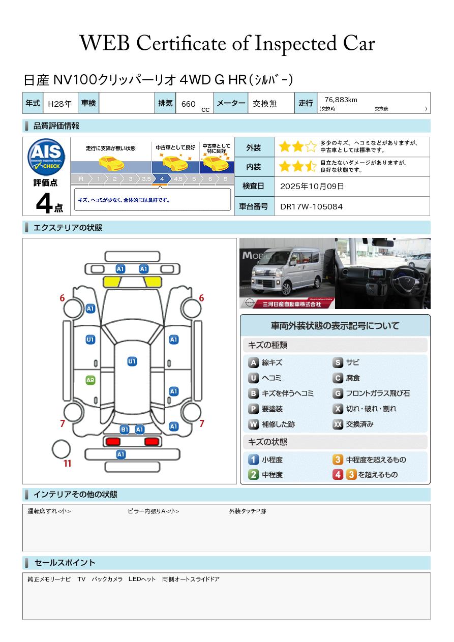 NV100クリッパーリオ 660cc 660 G ハイルーフ 4WD 純正メモリーナビ TV バックカメラ