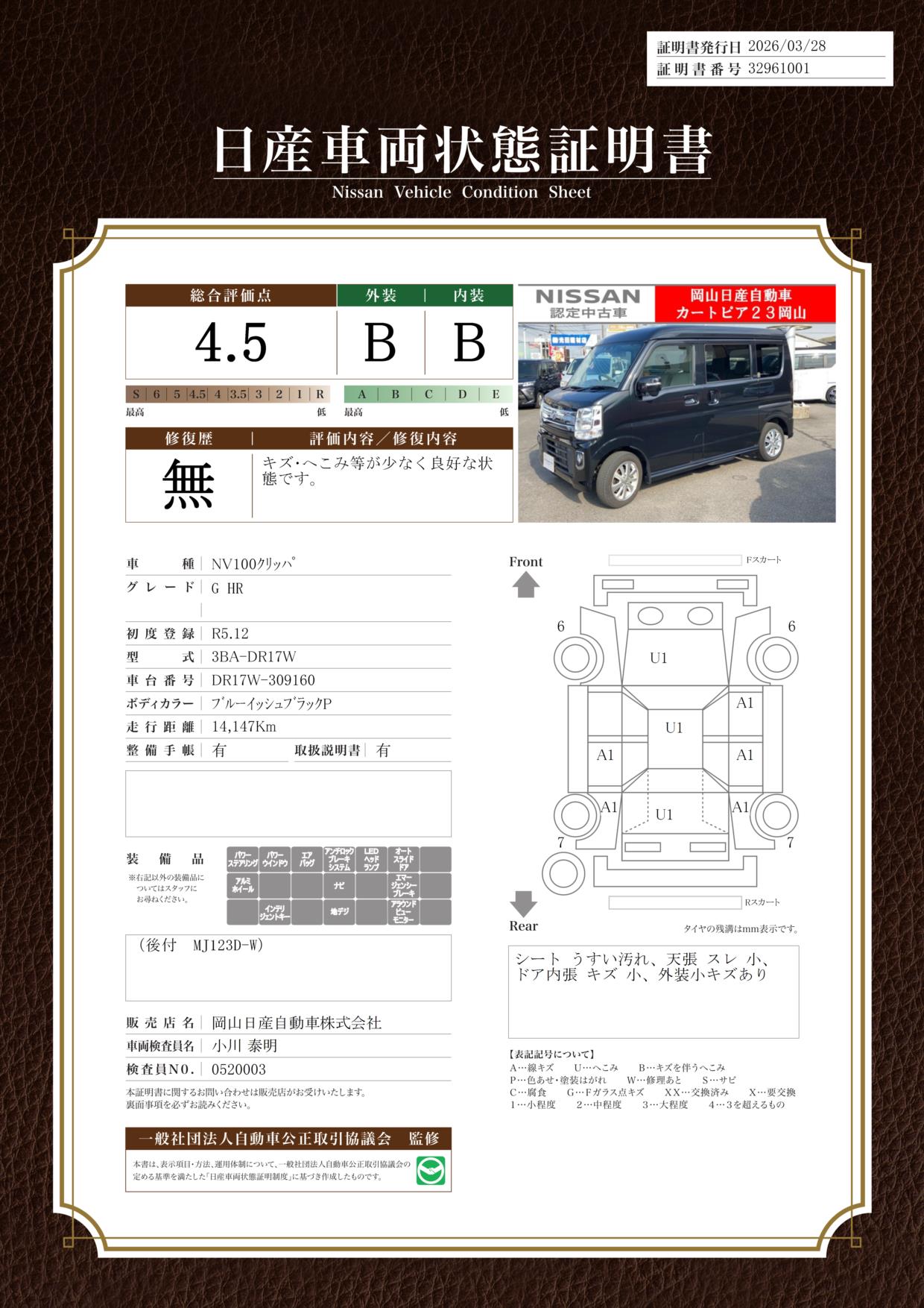 岡山日産 カートピア23岡山のホームページをご確認ありがとうございます。 当店はサービス工場のある全国でも数少ない中古車店舗となります。 ご購入後のメンテナンスも当店自慢のサービススタッフにお任せ下さい! 全車保証付きのディーラーならではの高品質なお車をご用意しております。 当社使用の試乗車、社用車も多数用意しています。 中古車選びのサポートを全力で致します!! 迷ったらまずはご連絡下さい。 遠方の方は、メール、電話でお気軽にお問い合わせ下さい。