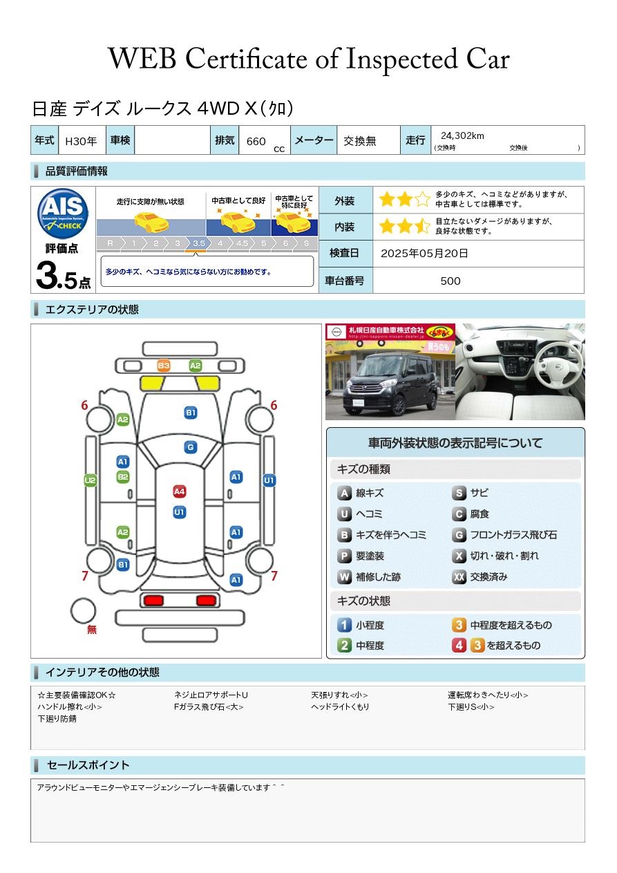 デイズルークス 660cc 660 X 4WD 660X アラウンドビューモニター