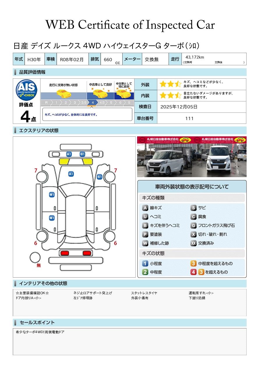 現状括弧書き内の年月まで車検有効期限が残っていますが、ご成約時に新しく車検を取り直します。なお取り直しの費用は車両価格に含まれています。