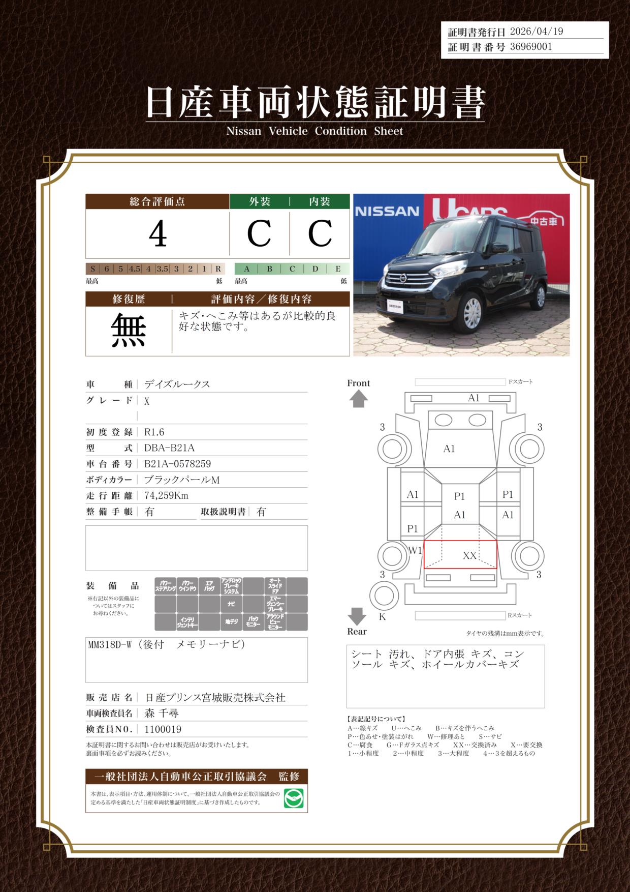 現状車検切れの状態ですが、ご成約時に新しく車検を実施します。車検費用は車両価格に含まれています。