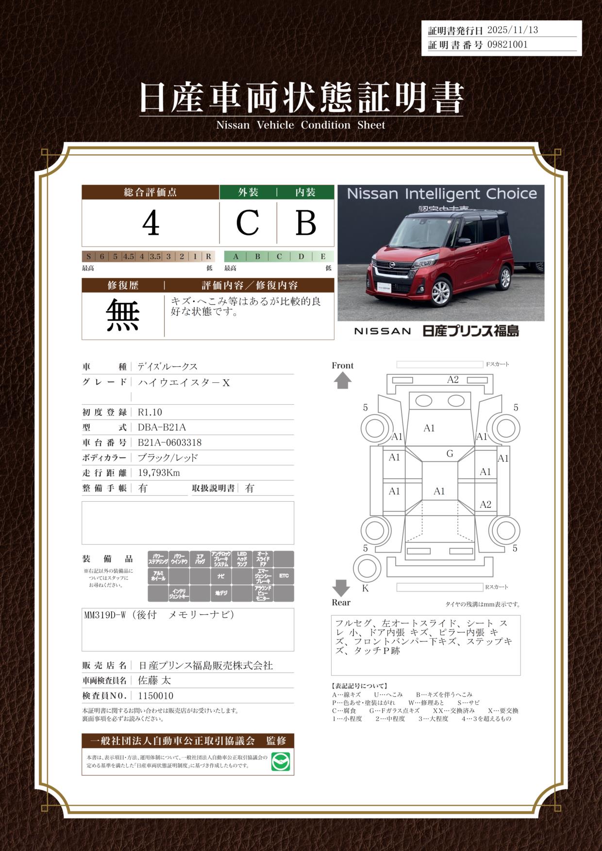 現状車検切れの状態ですが、ご成約時に新しく車検を実施します。車検費用は車両価格に含まれています。