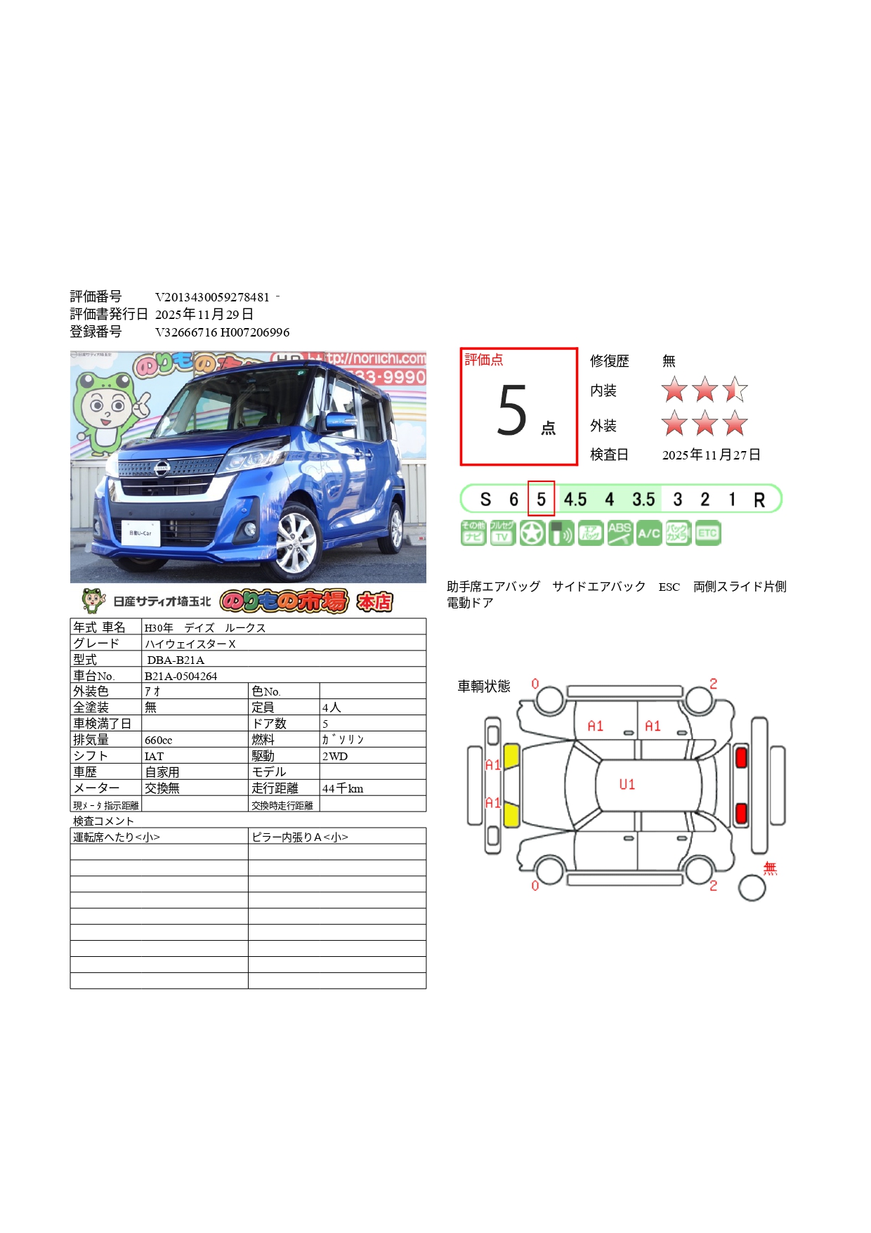 現状車検切れの状態ですが、ご成約時に新しく車検を実施します。車検費用は車両価格に含まれています。