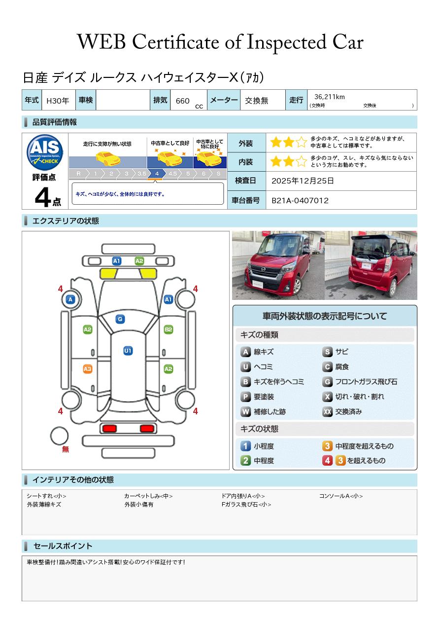 現状括弧書き内の年月まで車検有効期限が残っていますが、ご成約時に新しく車検を取り直します。なお取り直しの費用は車両価格に含まれています。