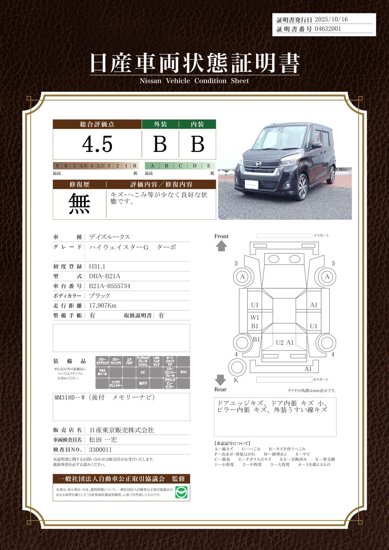 現状車検切れの状態ですが、ご成約時に新しく車検を実施します。車検費用は車両価格に含まれています。