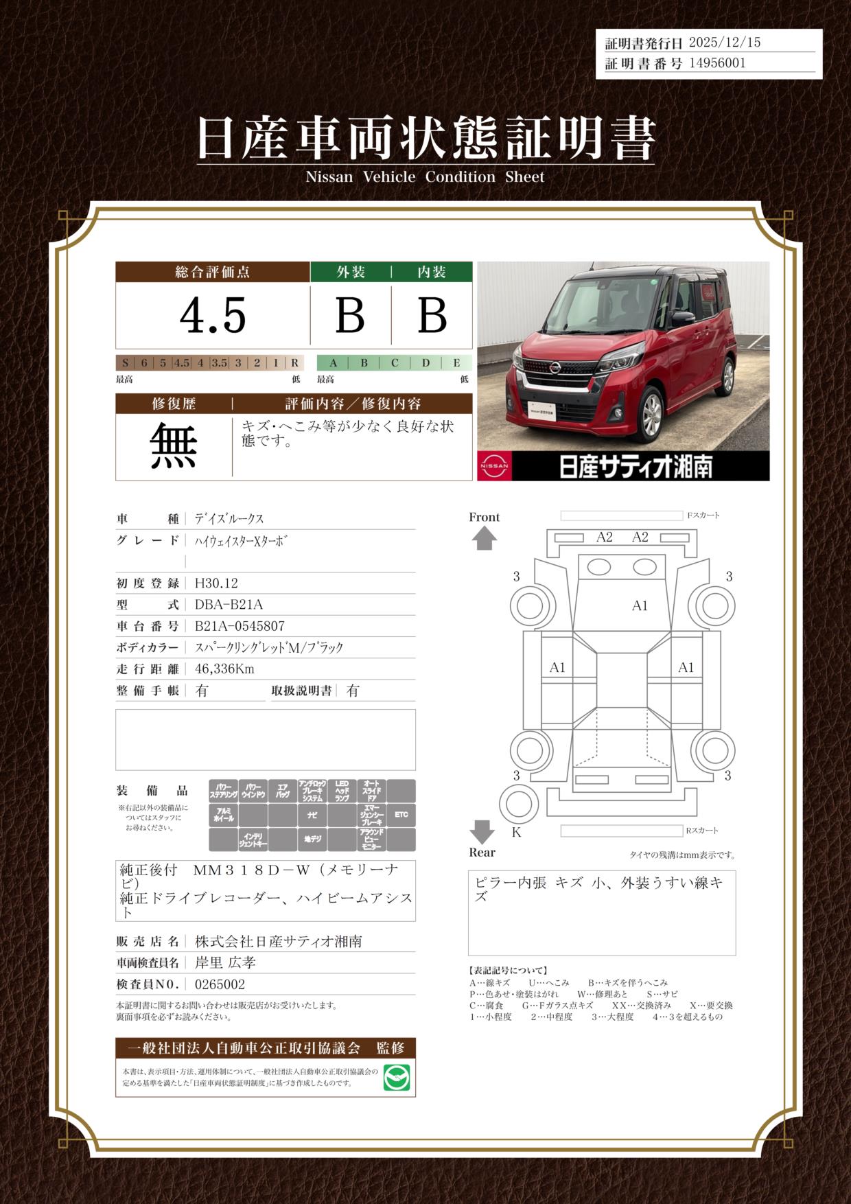 現状車検切れの状態ですが、ご成約時に新しく車検を実施します。車検費用は車両価格に含まれています。