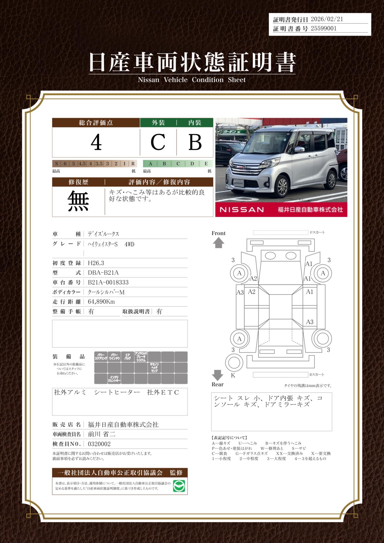 日産車両状態証明