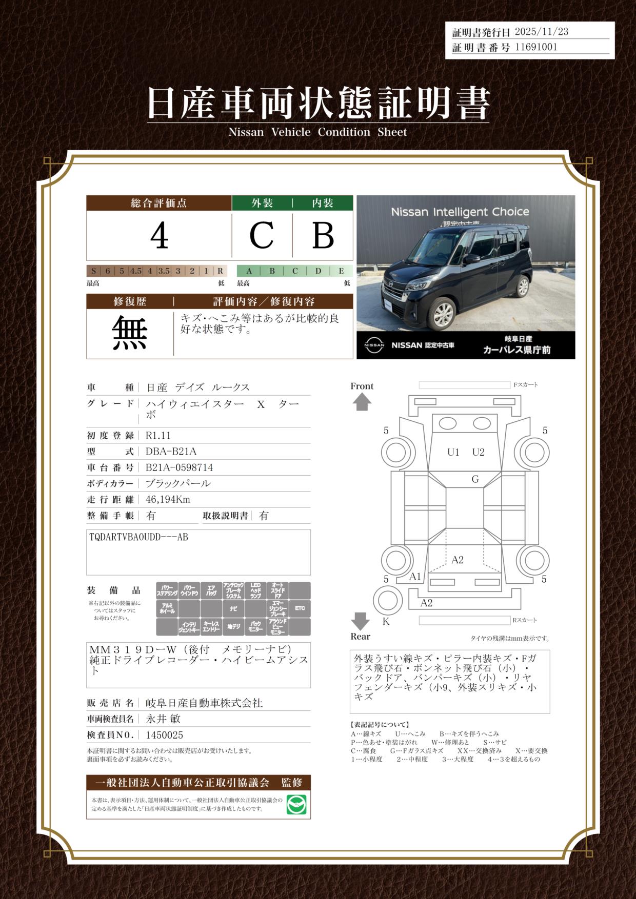デイズルークス 660cc 660 X Vセレクション 純正メモリーナビ アラウンドビューモニタ