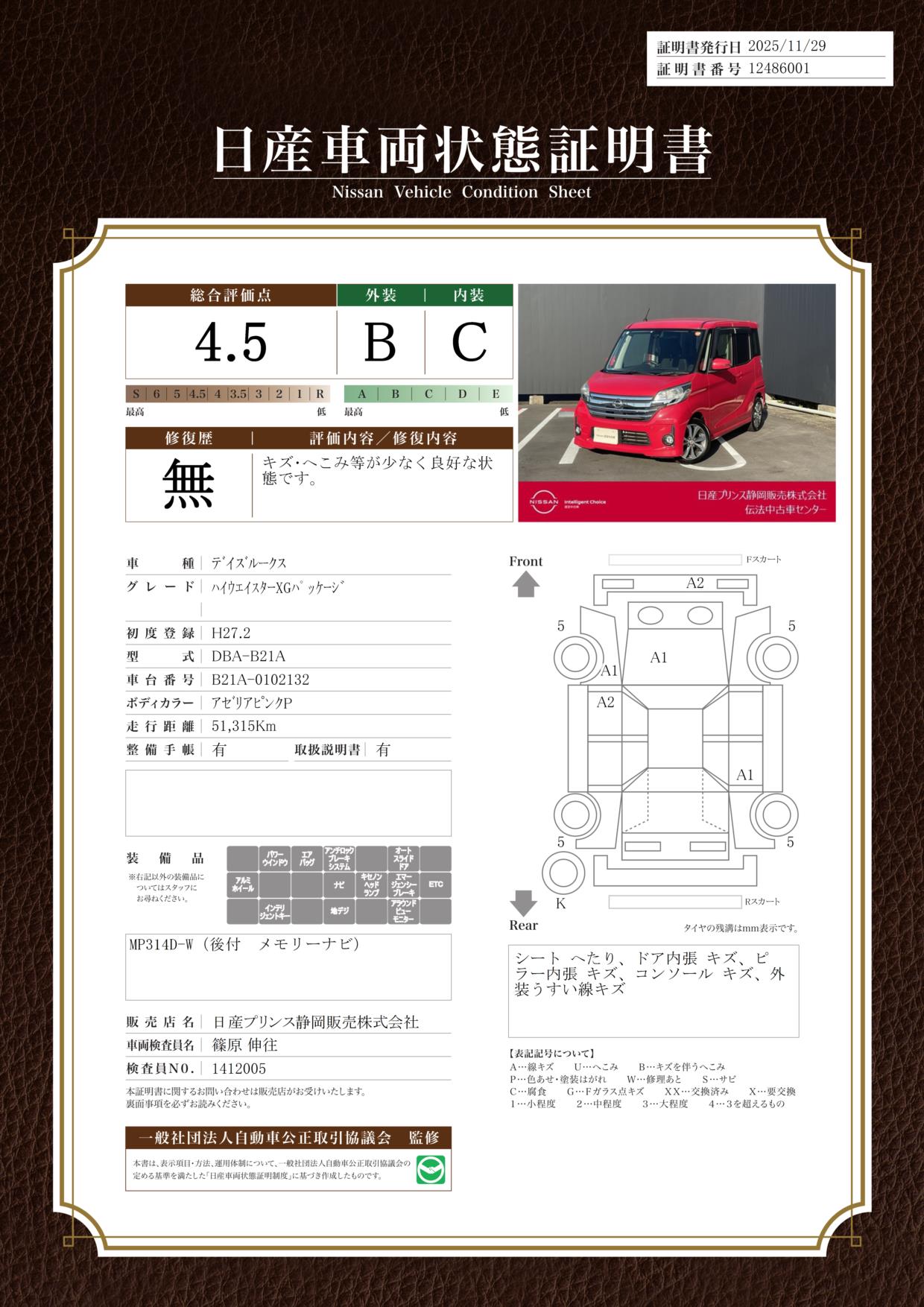 日産プリンス静岡販売株式会社の同じ中古車在庫一覧