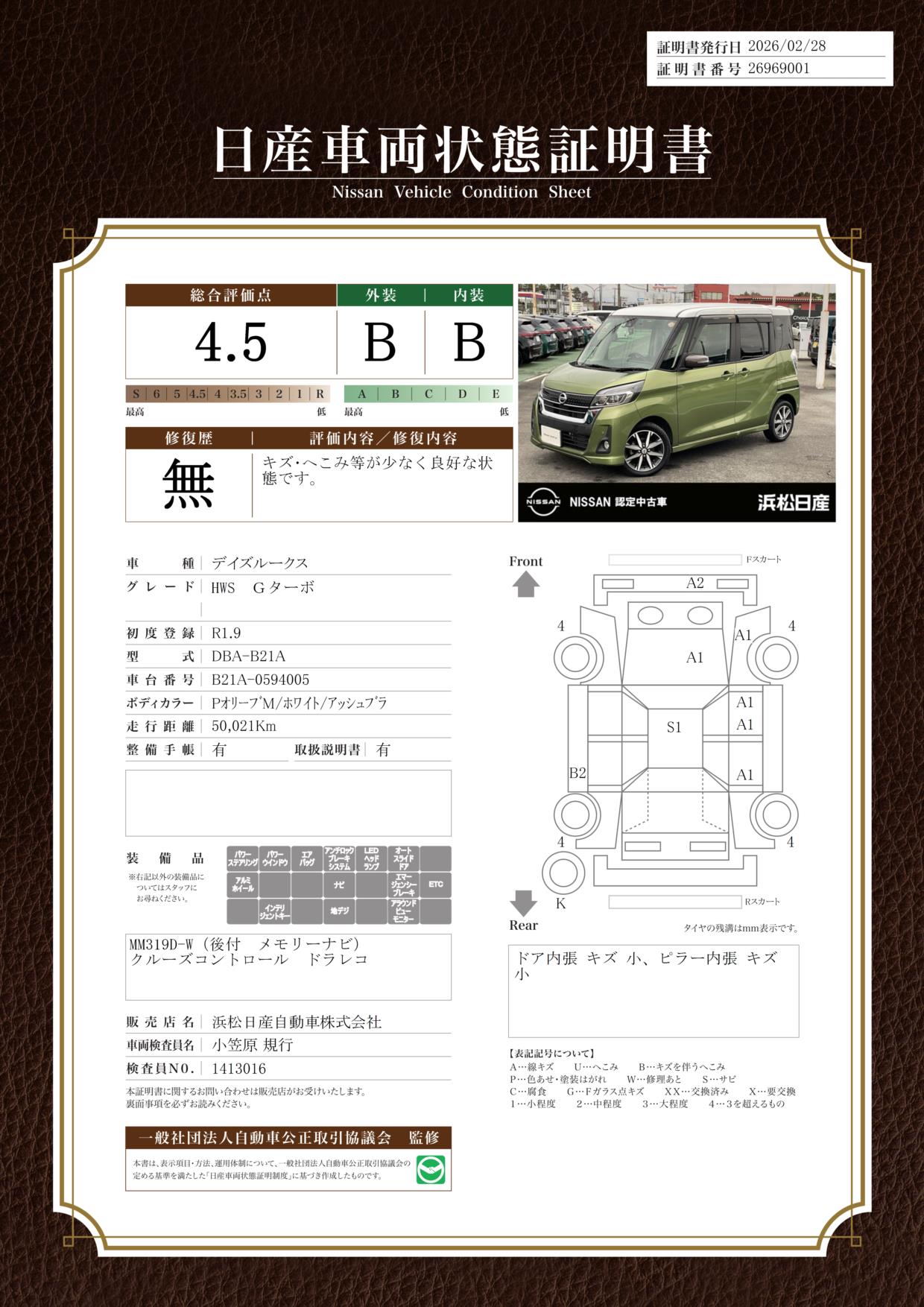 MM319D-Wナビ 両側オートスライドドア ETC ドラレコ アラウンドビューLEDライト デイズルークスハイウェイスターGターボ入荷しました
