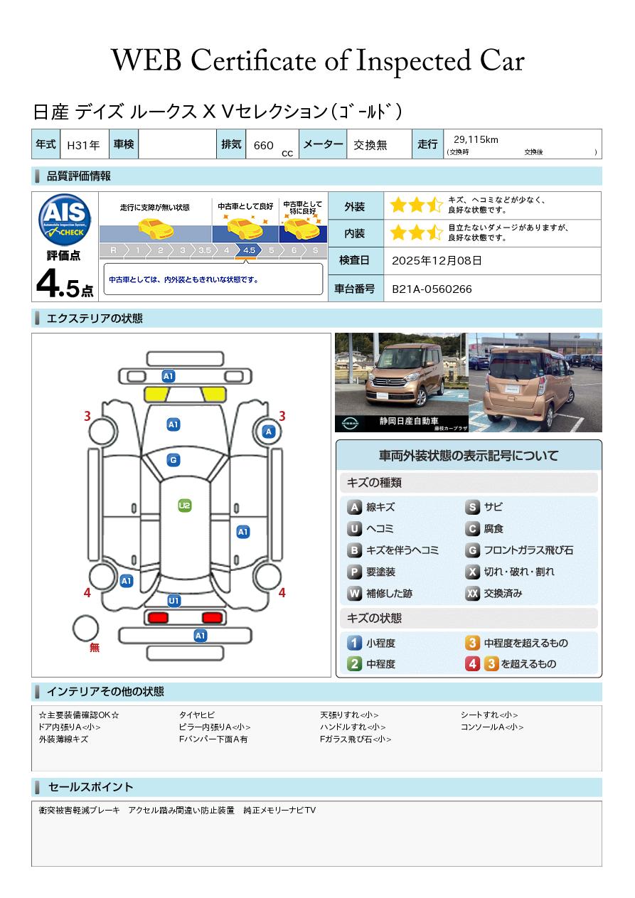 評価点イメージ : 中古車としては、内外装ともきれいな状態です。