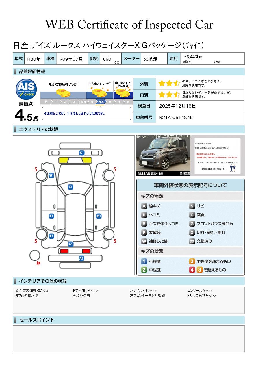 現状括弧書き内の年月まで車検有効期限が残っていますが、ご成約時に新しく車検を取り直します。なお取り直しの費用は車両価格に含まれています。
