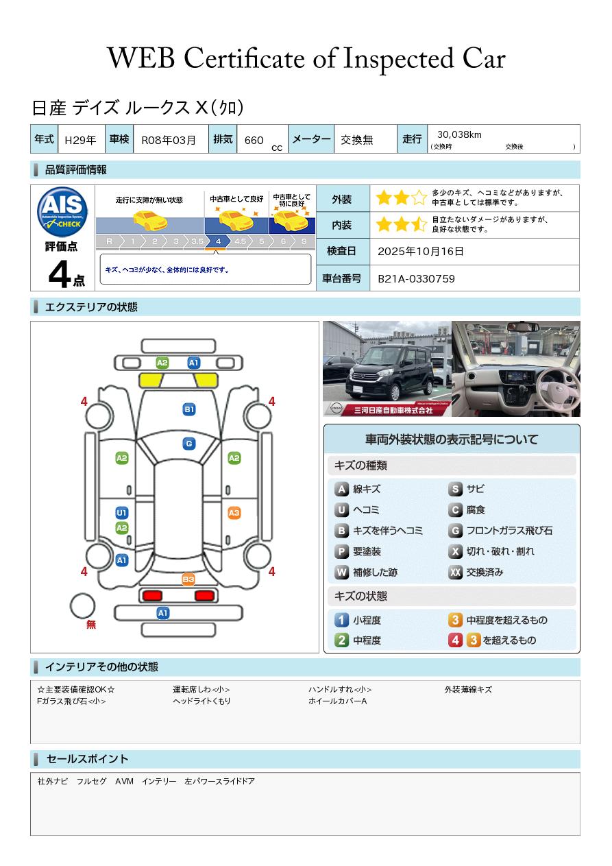デイズルークス 660cc 660 X アラウンドビューモニター