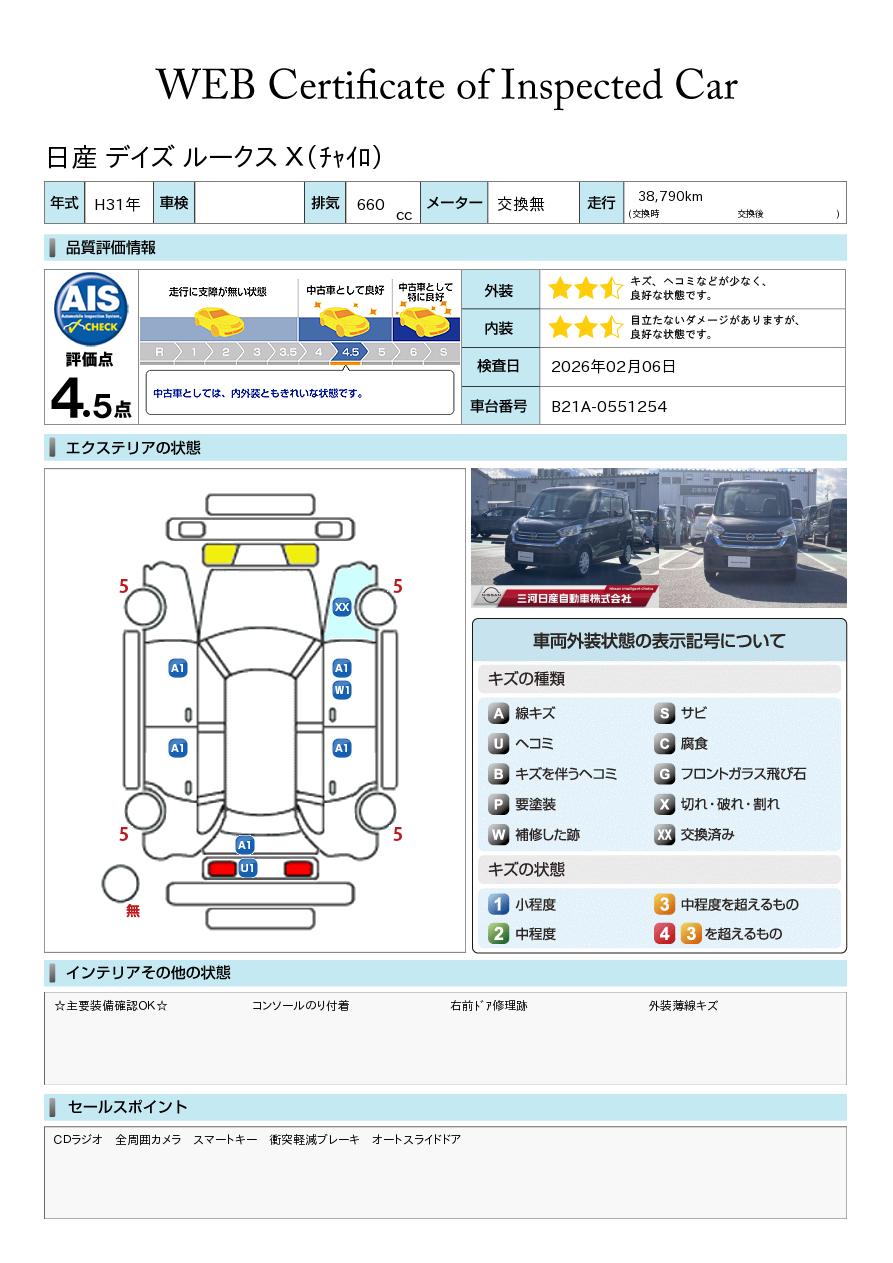 現状括弧書き内の年月まで車検有効期限が残っていますが、ご成約時に新しく車検を取り直します。なお取り直しの費用は車両価格に含まれています。