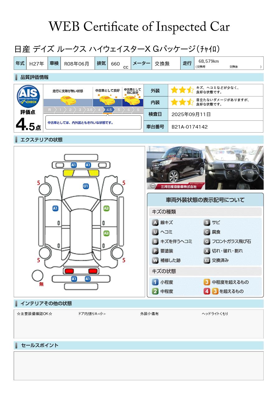 現状括弧書き内の年月まで車検有効期限が残っていますが、ご成約時に新しく車検を取り直します。なお取り直しの費用は車両価格に含まれています。