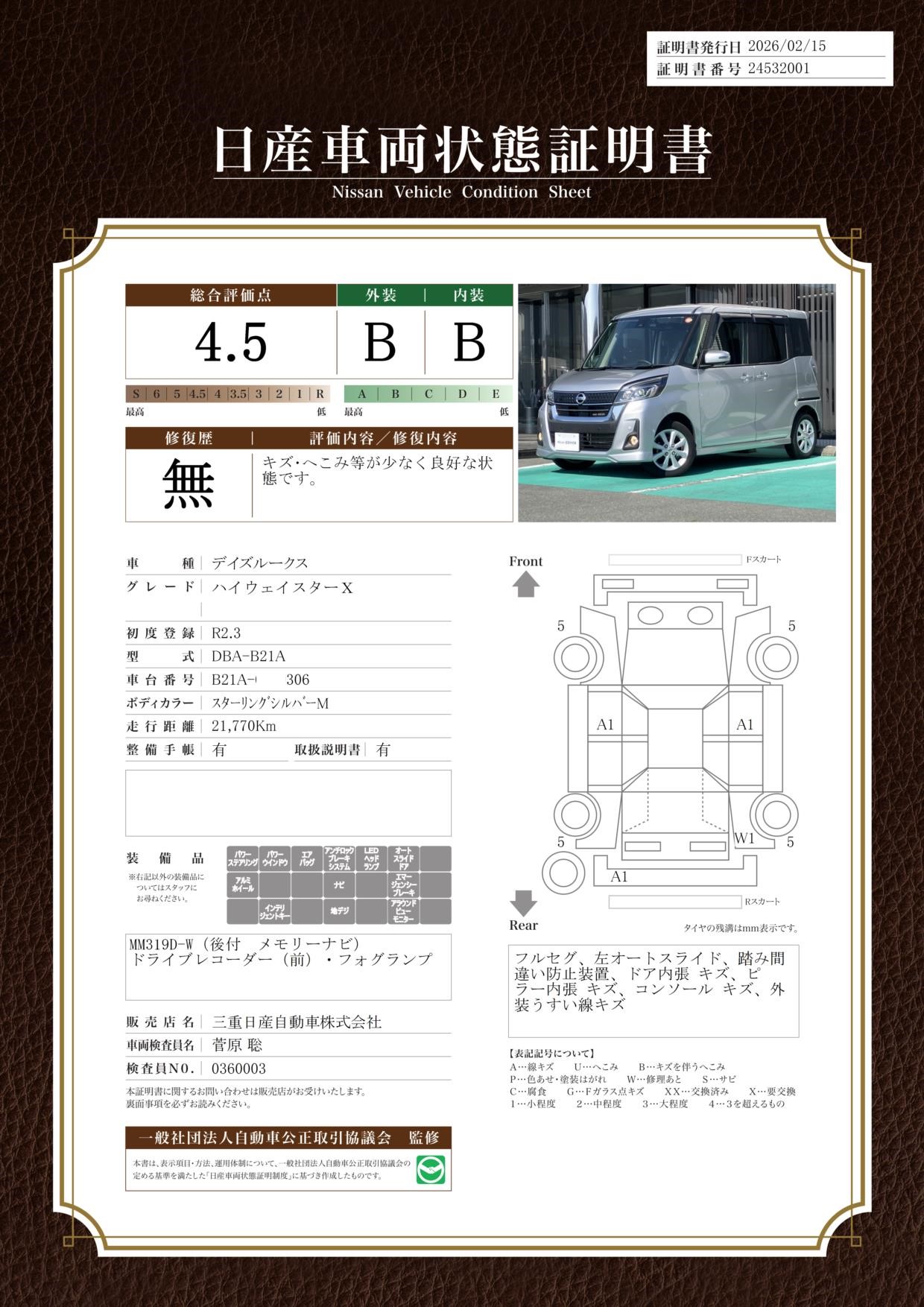 納車時に定期点検整備(費用は車両価格に含まれます。)