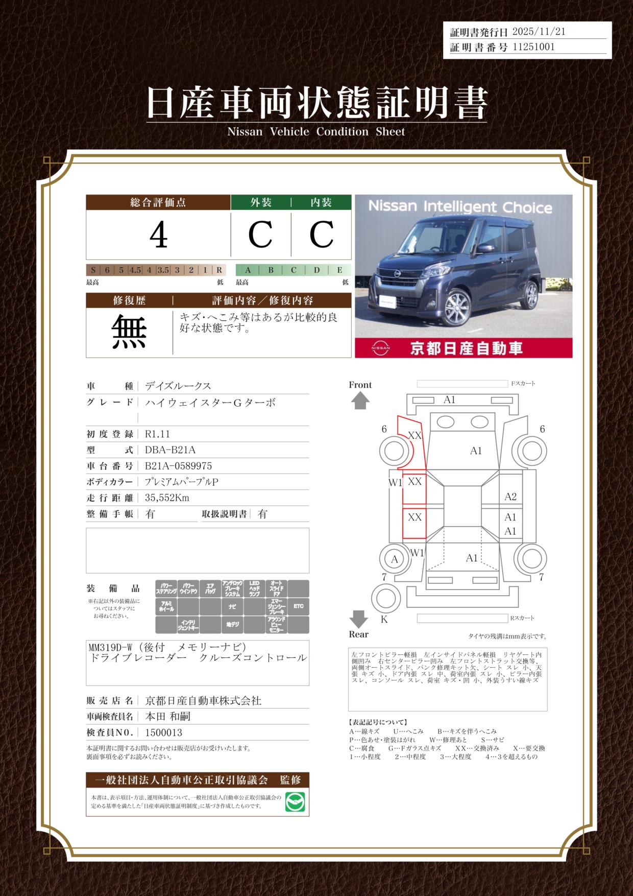 京都日産自動車『日産カーパレス伏見店』です!! 当店では1度ご来店頂いて実際にお車をご確認頂いていただける方に販売させていただいております、ご了承下さい。 ご来店の際は事前に在庫・商談状況の確認をお願いします。 ●日産ディーラーで買うおススメポイント! 日産の販売店の中古車には全社無料で「ワイド保証」が付いております。(一部加入が出来ない車両もございます。)