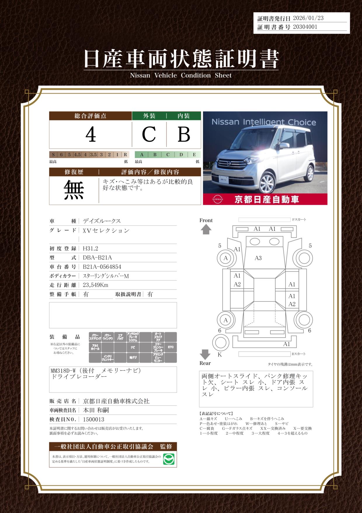 京都日産自動車『日産カーパレス伏見店』です!! 当店では1度ご来店頂いて実際にお車をご確認頂いていただける方に販売させていただいております、ご了承下さい。 ご来店の際は事前に在庫・商談状況の確認をお願いします。 ●日産ディーラーで買うおススメポイント! 日産の販売店の中古車には全社無料で「ワイド保証」が付いております。(一部加入が出来ない車両もございます。)