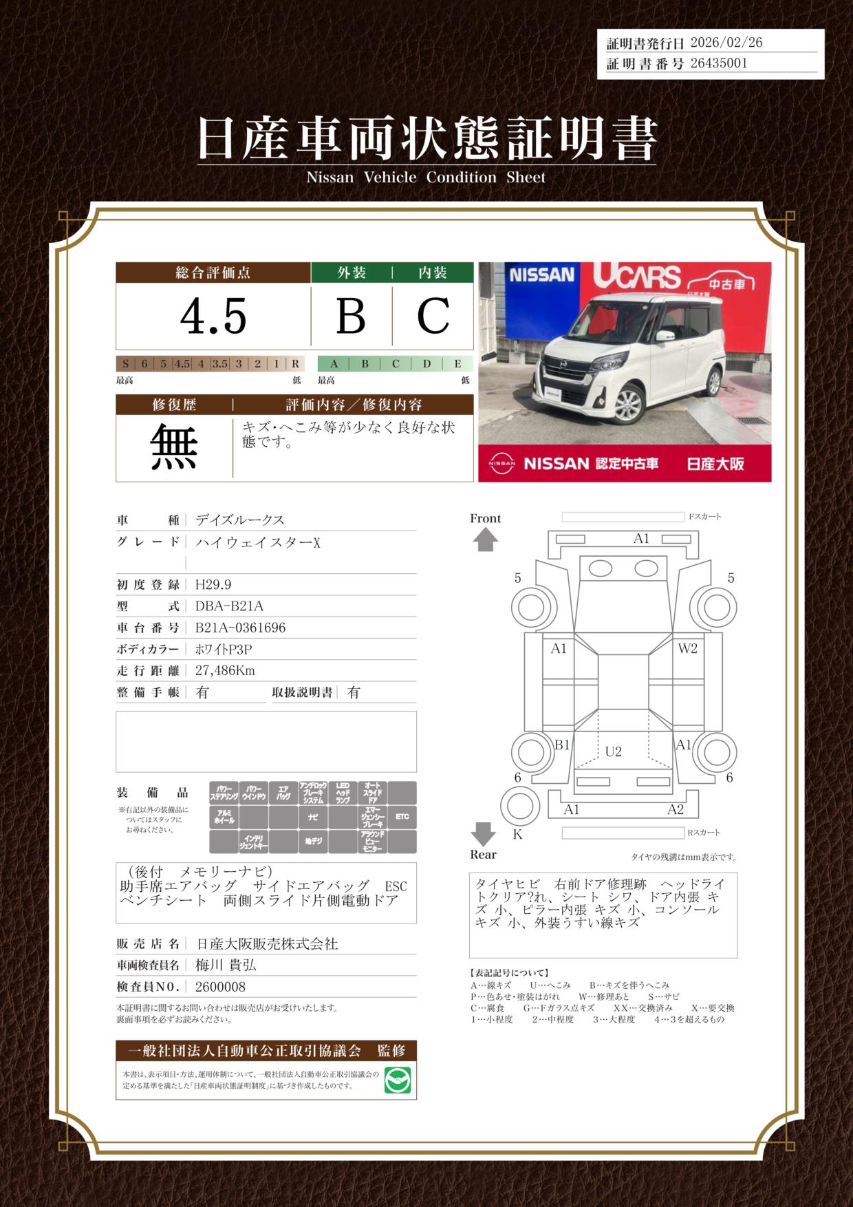日産大阪UCARS摂津『日産中古車ワイド保証12ケ月』:延長保証もございます。