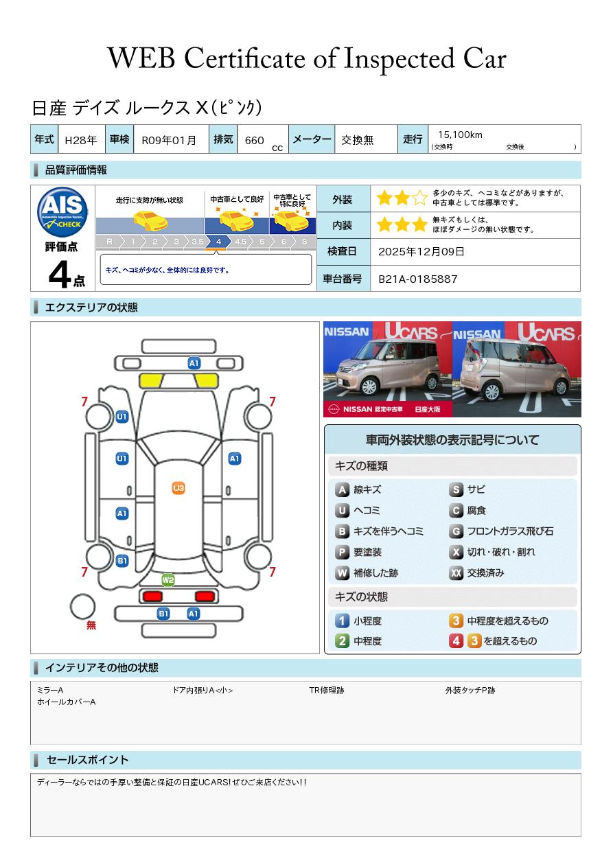 ディーラーならではの手厚い整備と保証の日産UCARS!ぜひご来店ください!!車検もたっぷりのデイズルークスです!衝突被害軽減ブレーキやBluetooth内蔵のメモリーナビも付いてます!