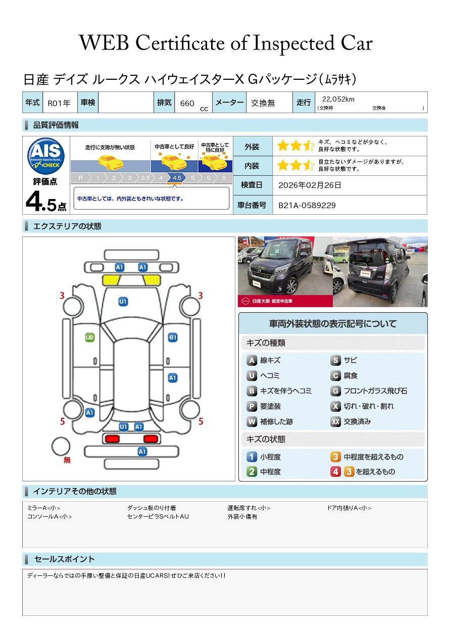 ディーラーならではの手厚い整備と保証の日産UCARS!ぜひご来店ください!!丁度良い価格帯のデイズルークスです!人と車を認識して衝突被害を軽減してくれるブレーキが付いています!
