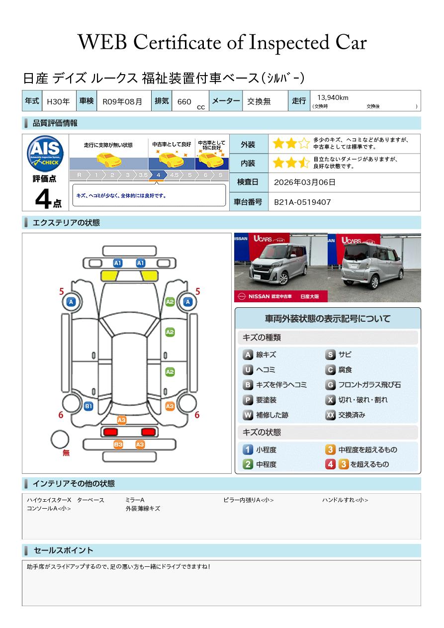 現状括弧書き内の年月まで車検有効期限が残っていますが、ご成約時に新しく車検を取り直します。なお取り直しの費用は車両価格に含まれています。