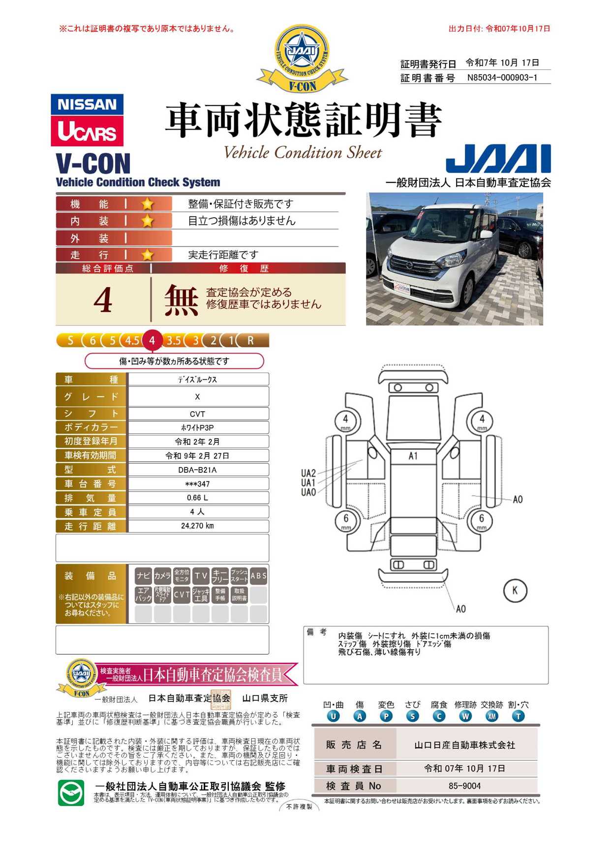 デイズルークス 660cc 660 X 禁煙車 片側電動スライドドア 純正メモリ