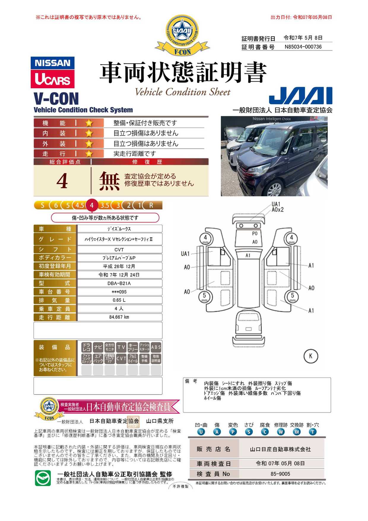 デイズルークス 660cc 660 X 禁煙車 片側電動スライドドア 純正メモリ