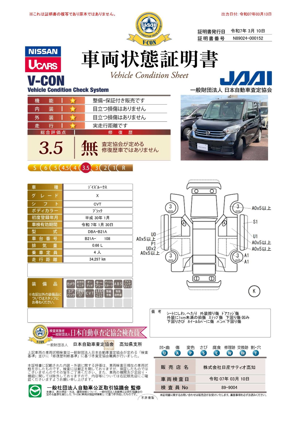 車両状態証明書を見る
