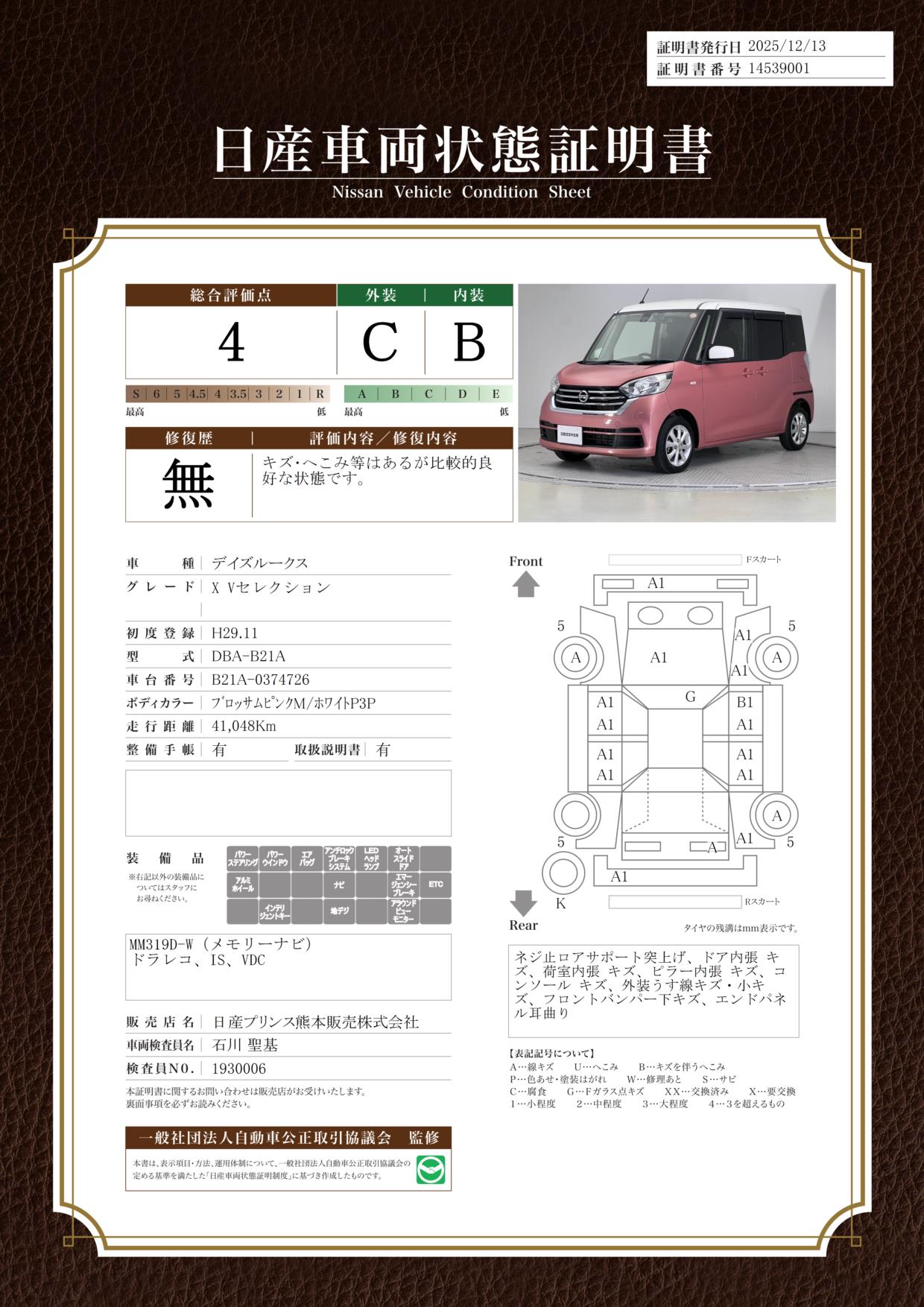 現状車検切れの状態ですが、ご成約時に新しく車検を実施します。車検費用は車両価格に含まれています。