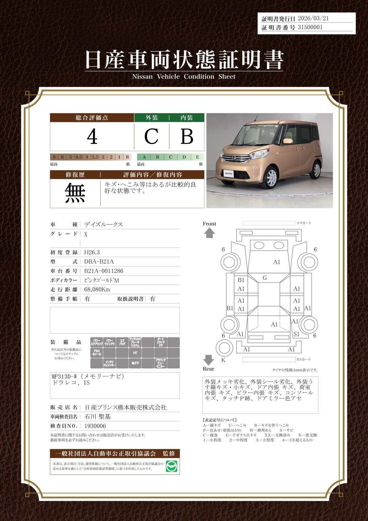 こちらのクルマは 「日産認定中古車」。 だから、4つの安心をお約束。