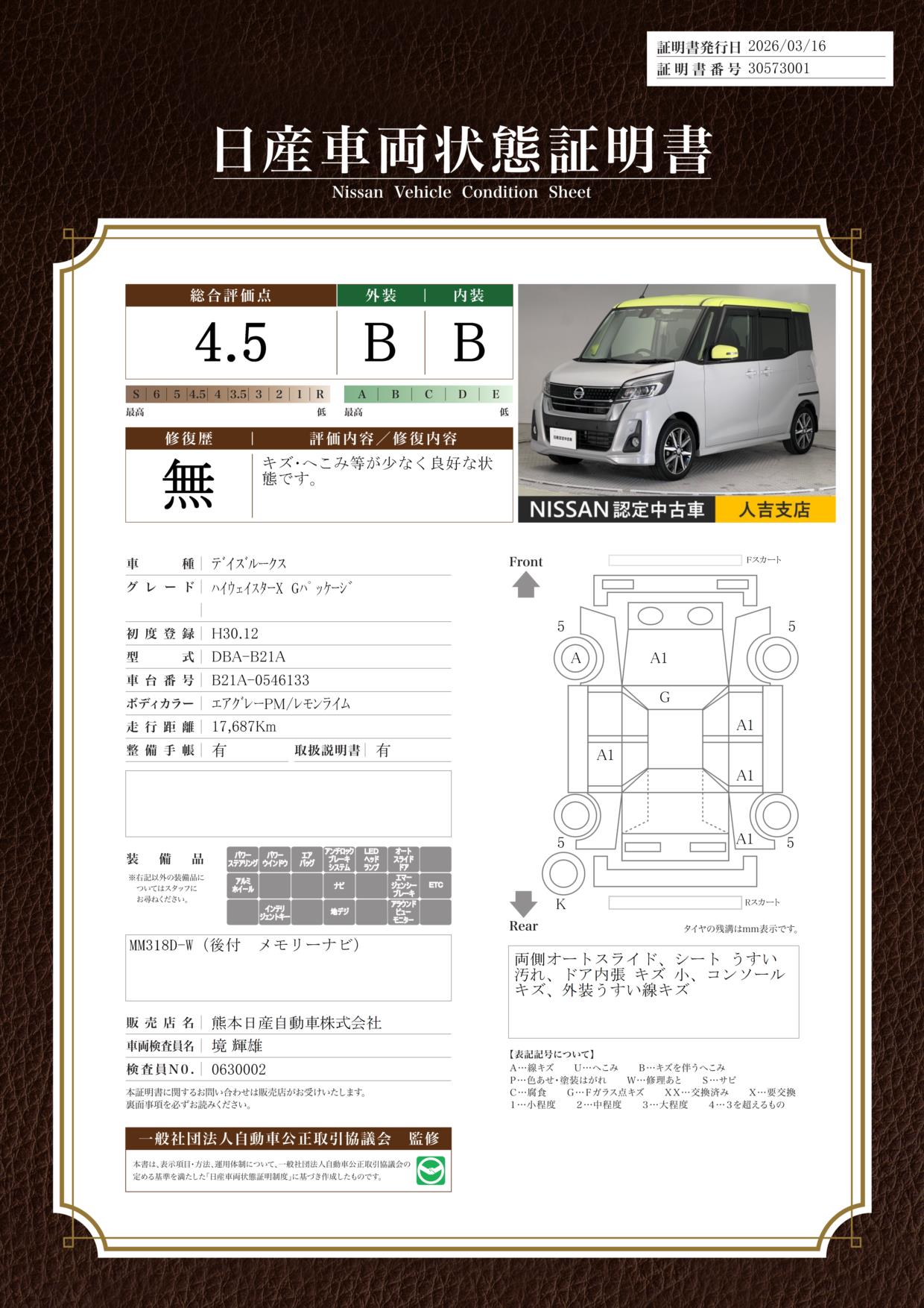 日産自動車認定の中古車販売店です。