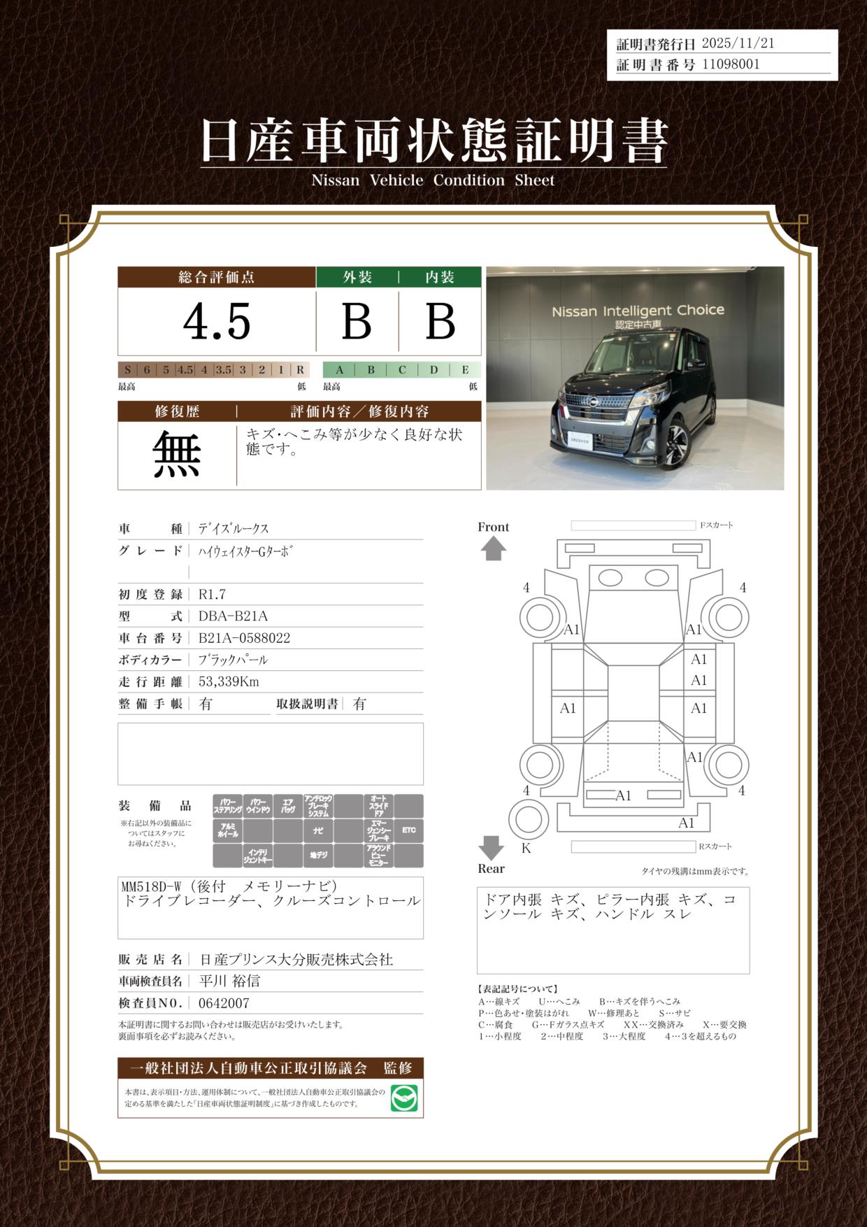 現状括弧書き内の年月まで車検有効期限が残っていますが、ご成約時に新しく車検を取り直します。なお取り直しの費用は車両価格に含まれています。