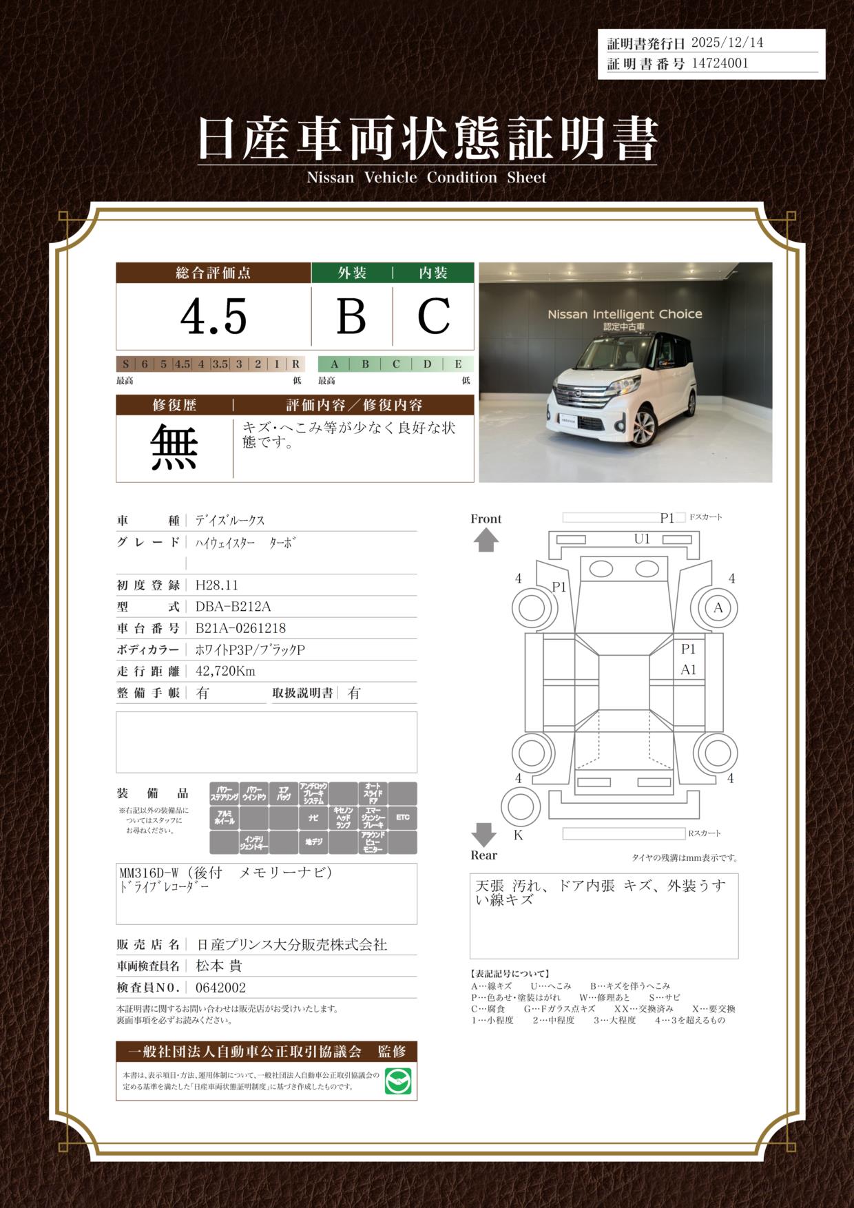 現状車検切れの状態ですが、ご成約時に新しく車検を実施します。車検費用は車両価格に含まれています。