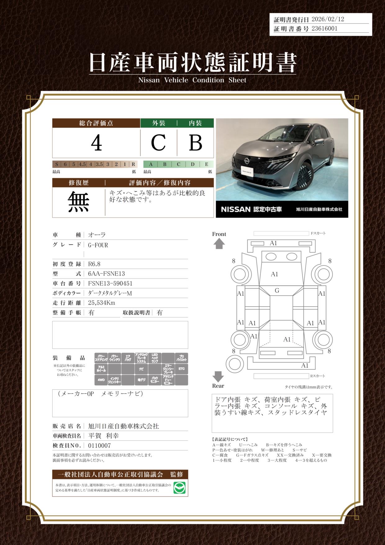 現状括弧書き内の年月まで車検有効期限が残っていますが、ご成約時に新しく車検を取り直します。なお取り直しの費用は車両価格に含まれています。