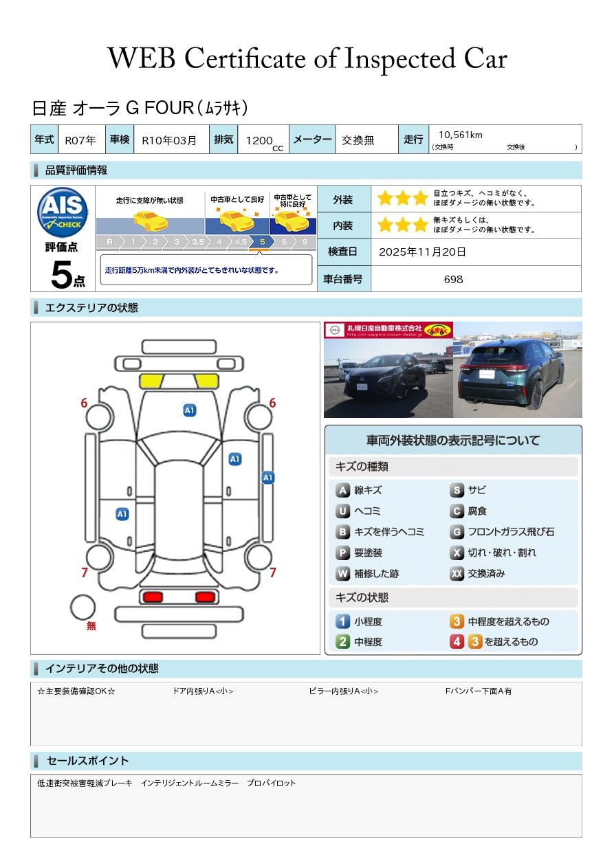 現状括弧書き内の年月まで車検有効期限が残っていますが、ご成約時に新しく車検を取り直します。なお取り直しの費用は車両価格に含まれています。