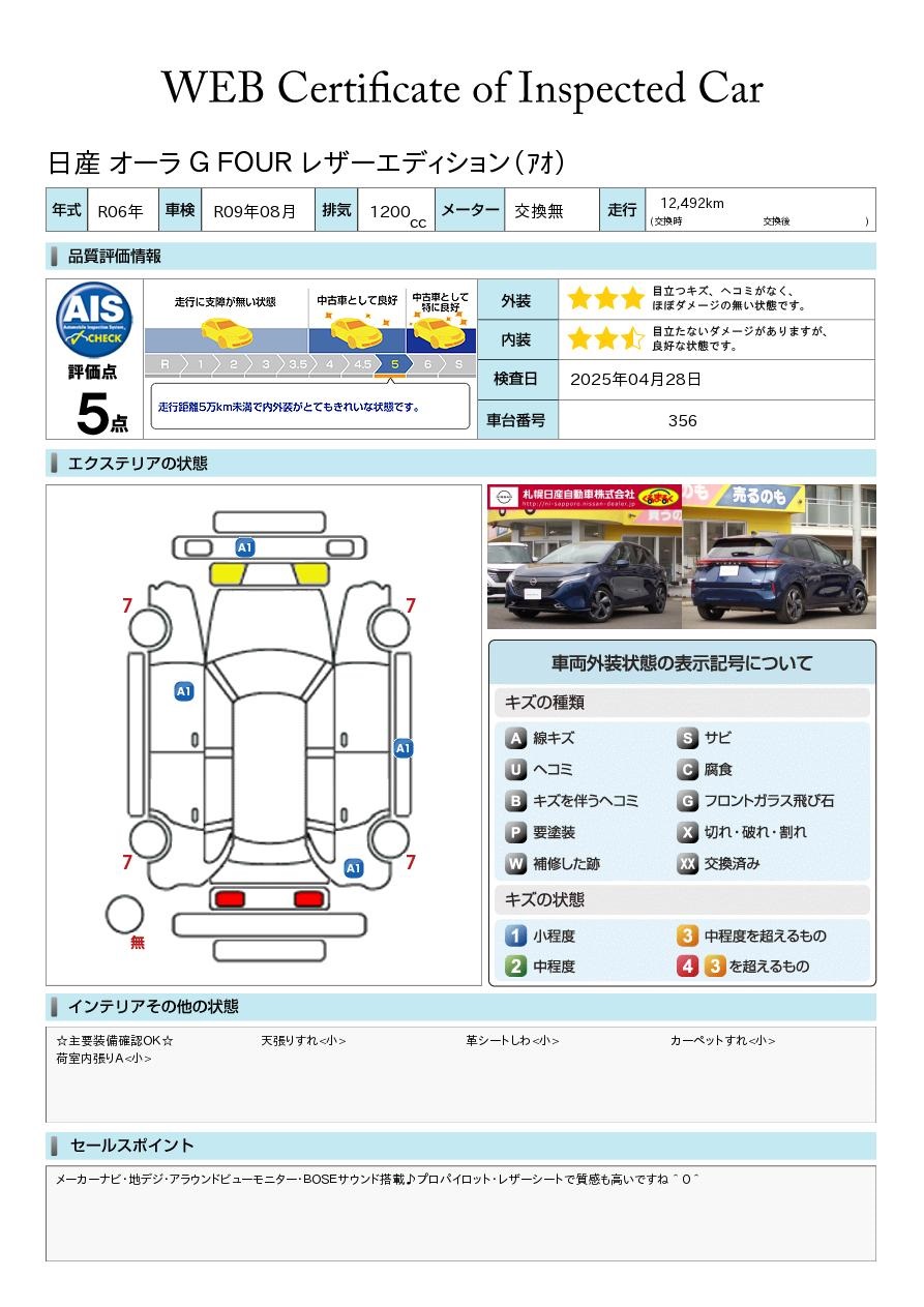 日産車はモチロンのこと 他メーカーでも軽自動車からミニバンまで幅広く展示中! 「くるまるく」店の中でもスケールの大きい店舗ですので、在庫も豊富に常時40台~60台展示中! AIS評価書付車両(第三者評価書)も多数ございますので、ご安心ください♪ 安心の日産「ワイド保証」や「自社ピット」完備! スタッフ一同お待ち申し上げております^^ 全車走行メーター管理システム導入☆(日本オートオークション協議会)