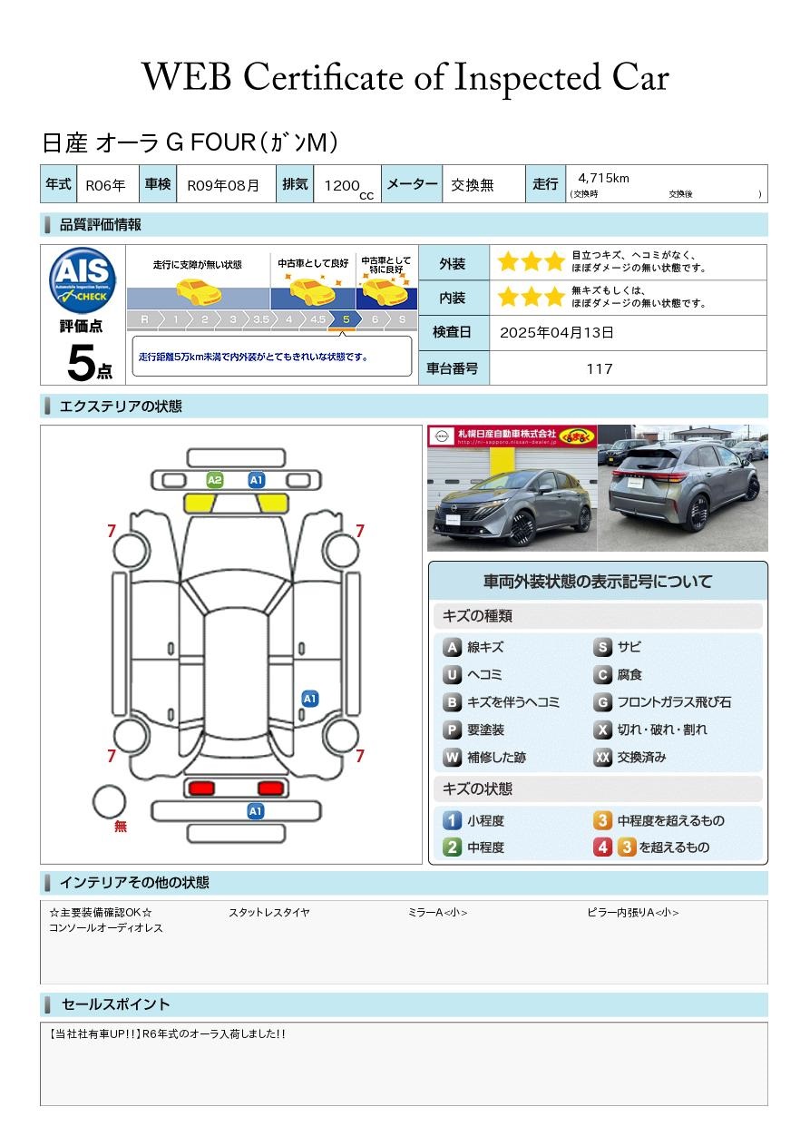 日産車はモチロンのこと 他メーカーでも軽自動車からミニバンまで幅広く展示中! 「くるまるく」店の中でもスケールの大きい店舗ですので、在庫も豊富に常時40台~60台展示中! AIS評価書付車両(第三者評価書)も多数ございますので、ご安心ください♪ 安心の日産「ワイド保証」や「自社ピット」完備! スタッフ一同お待ち申し上げております^^ 全車走行メーター管理システム導入☆(日本オートオークション協議会)