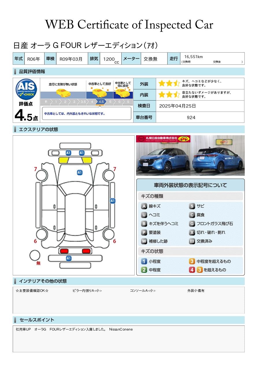 社用車UP オーラG FOURレザーエディション入庫しました。 NissanConeneナビ アラウンドビューモニター SOSコール スマートルームミラー ETC2.0 プロパイロット