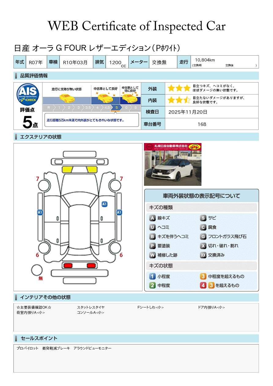 現状括弧書き内の年月まで車検有効期限が残っていますが、ご成約時に新しく車検を取り直します。なお取り直しの費用は車両価格に含まれています。