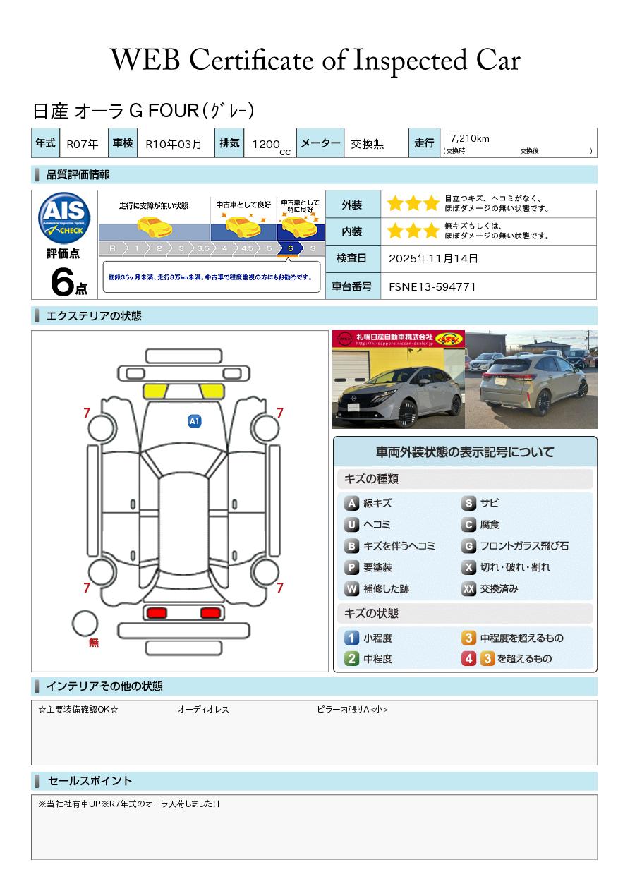 ※当社社有車UP※R7年式のオーラ入荷しました!!インテリジェントルームミラーやアラウンドビューモニター、衝突軽減ブレーキといった装備が充実!
