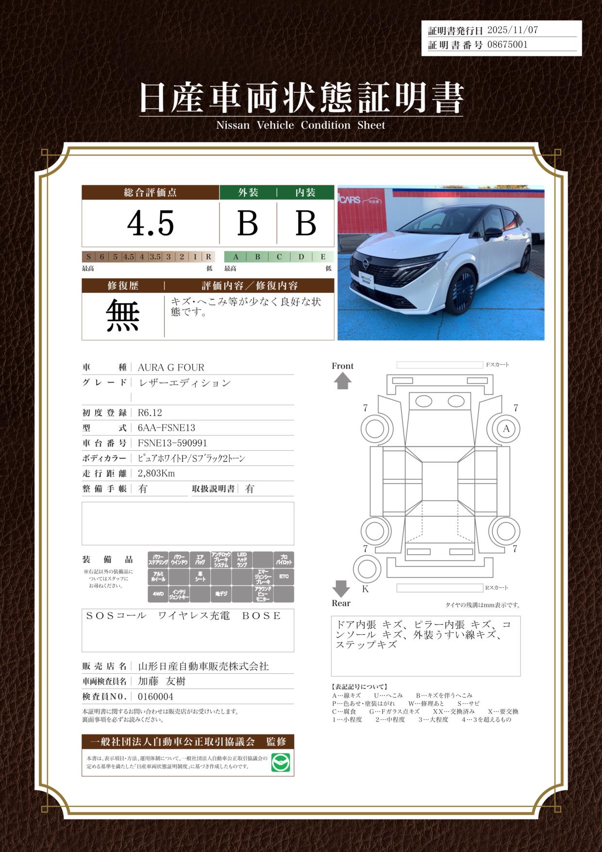 ノートオーラ 1200cc 1.2 G FOUR レザーエディション 4WD