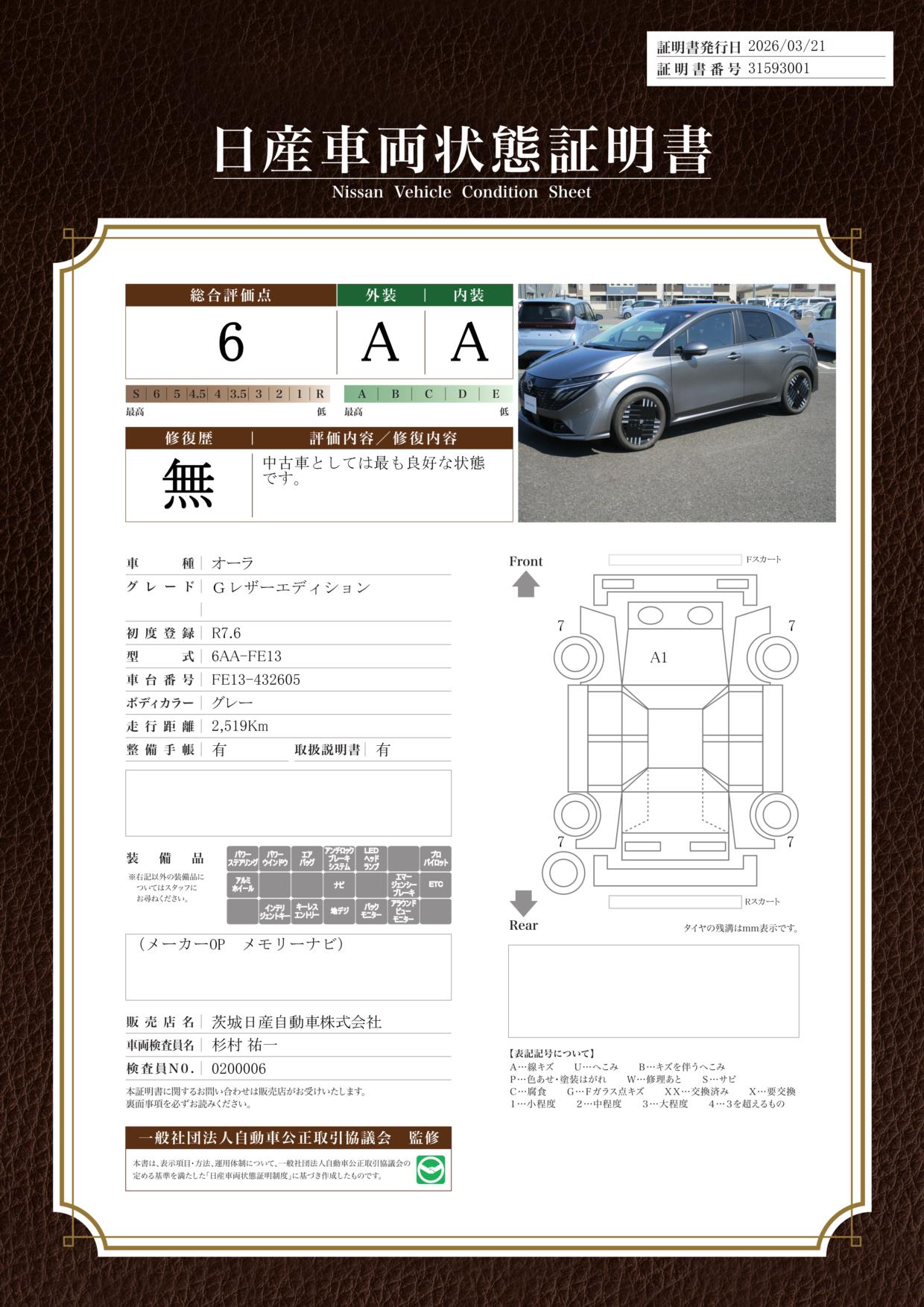 「車両状態証明書」は、査定協会監修のプロの検査員が公正かつ確かな基準で検査した”安心の証”です。