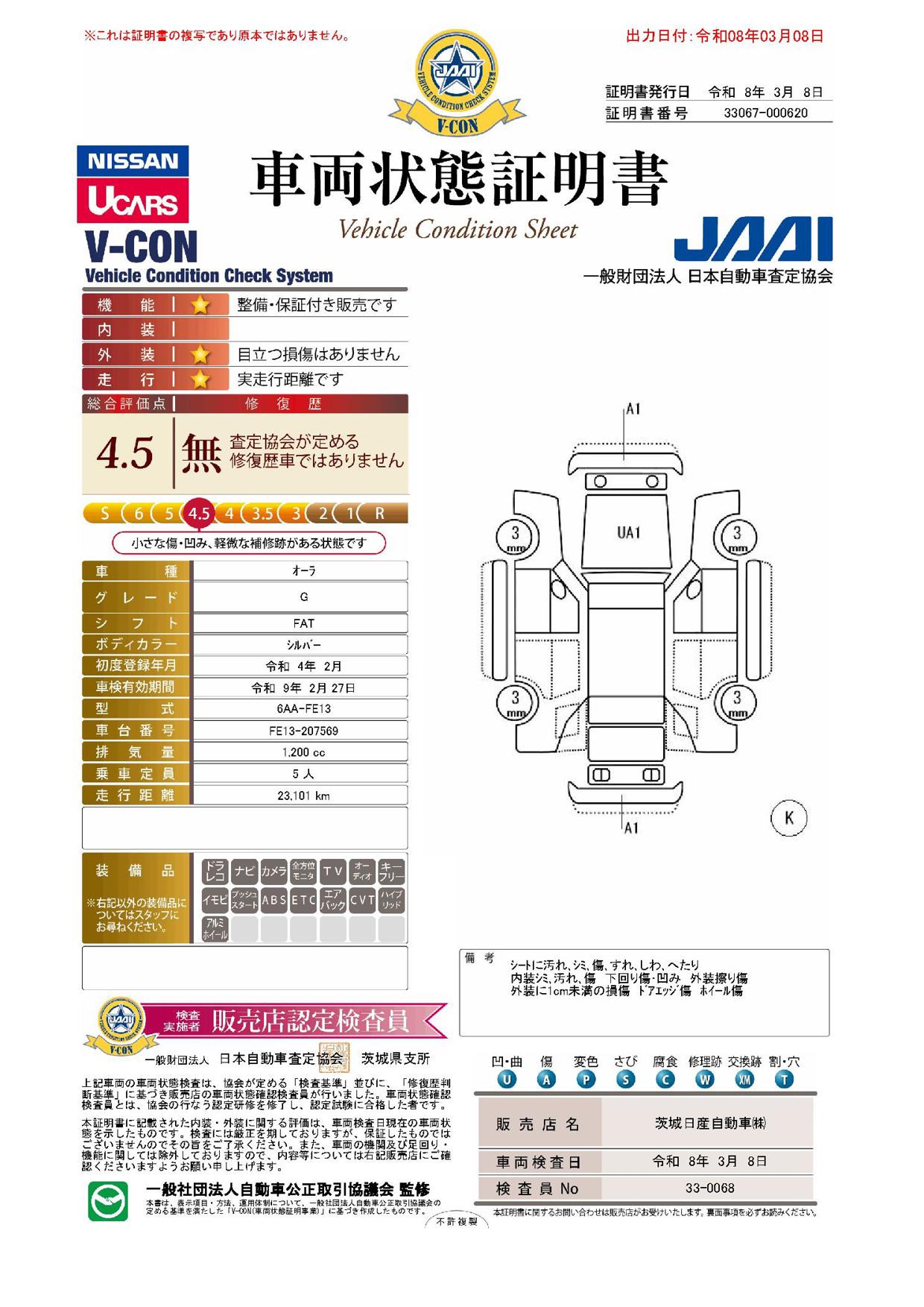 「車両状態証明書」は、査定協会監修のプロの検査員が公正かつ確かな基準で検査した”安心の証”です。