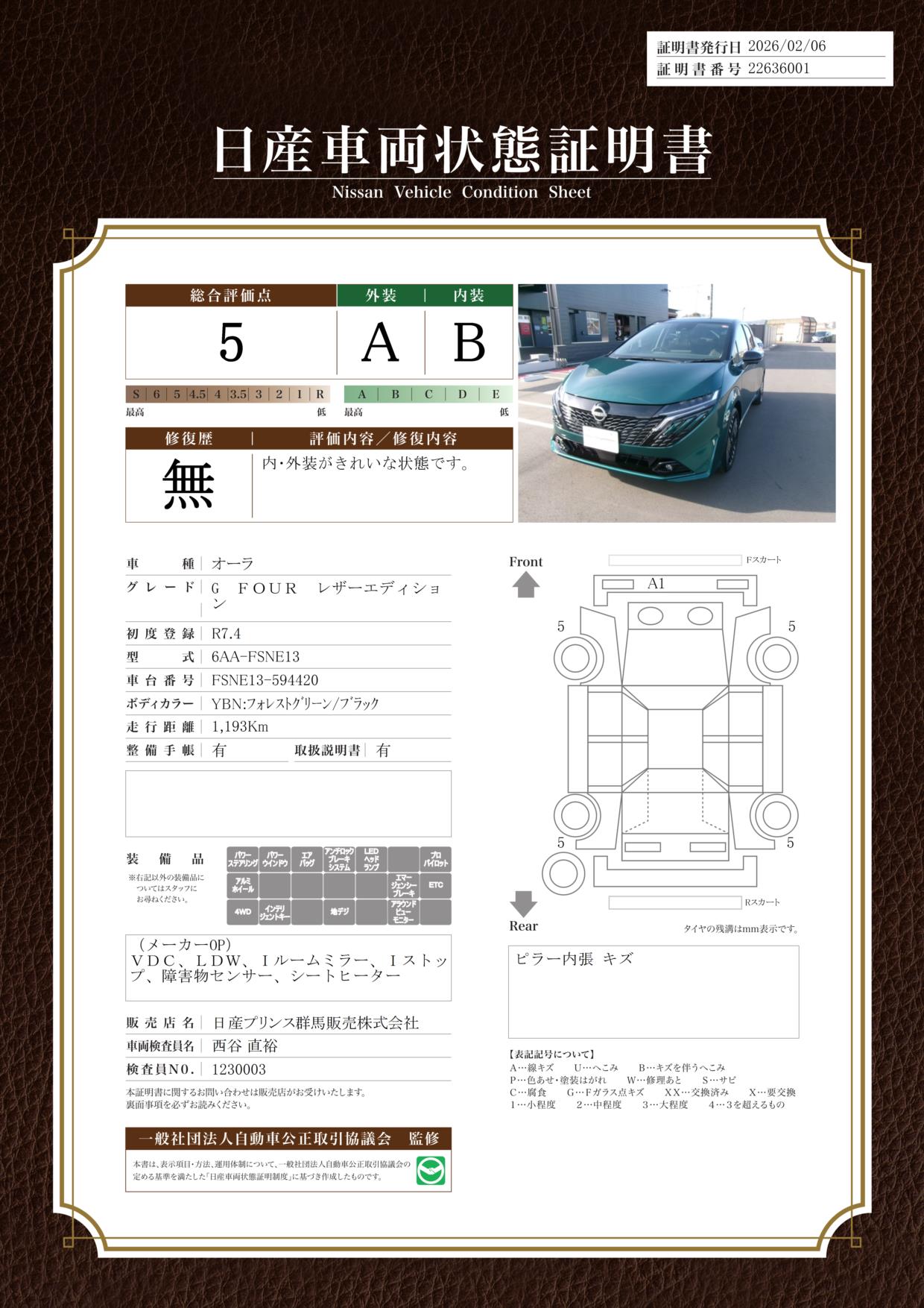 現状括弧書き内の年月まで車検有効期限が残っていますが、ご成約時に新しく車検を取り直します。なお取り直しの費用は車両価格に含まれています。