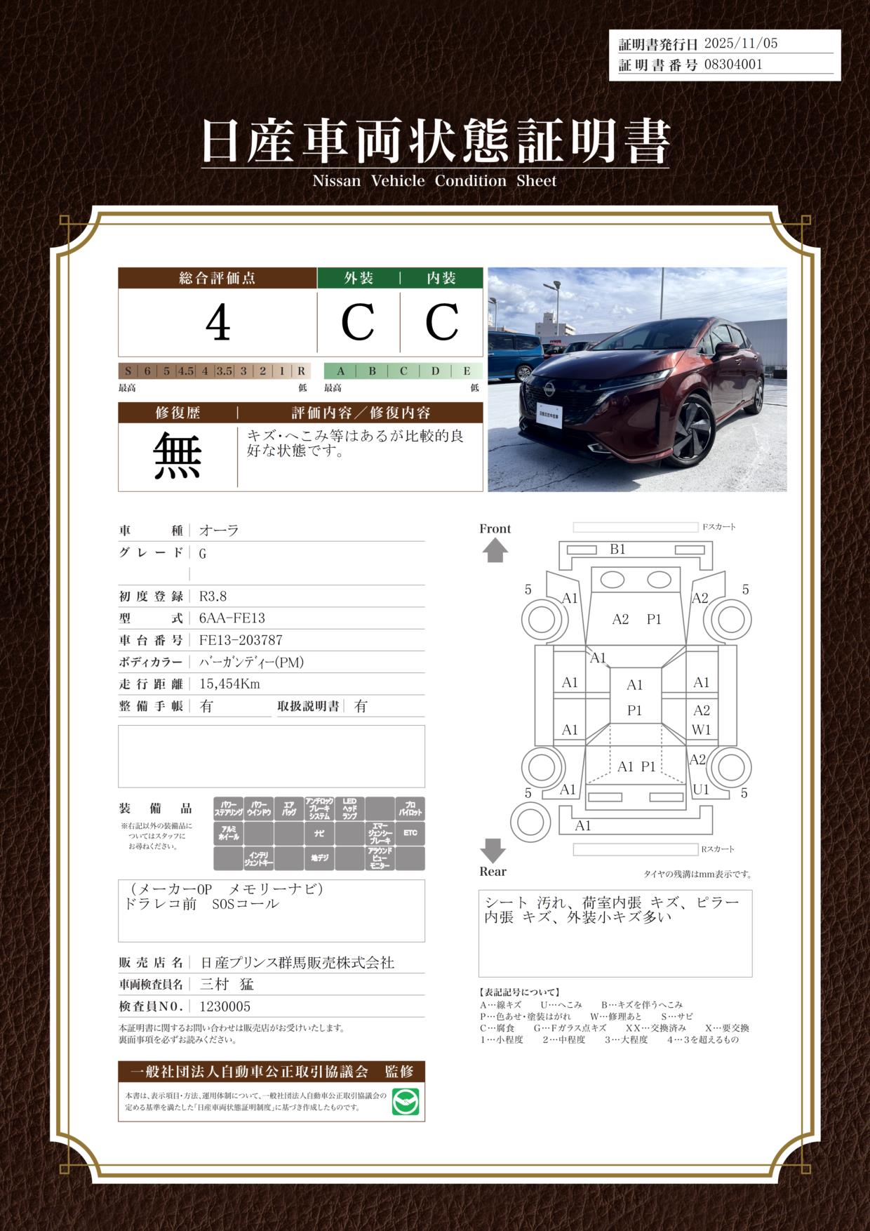 現状括弧書き内の年月まで車検有効期限が残っていますが、ご成約時に新しく車検を取り直します。なお取り直しの費用は車両価格に含まれています。