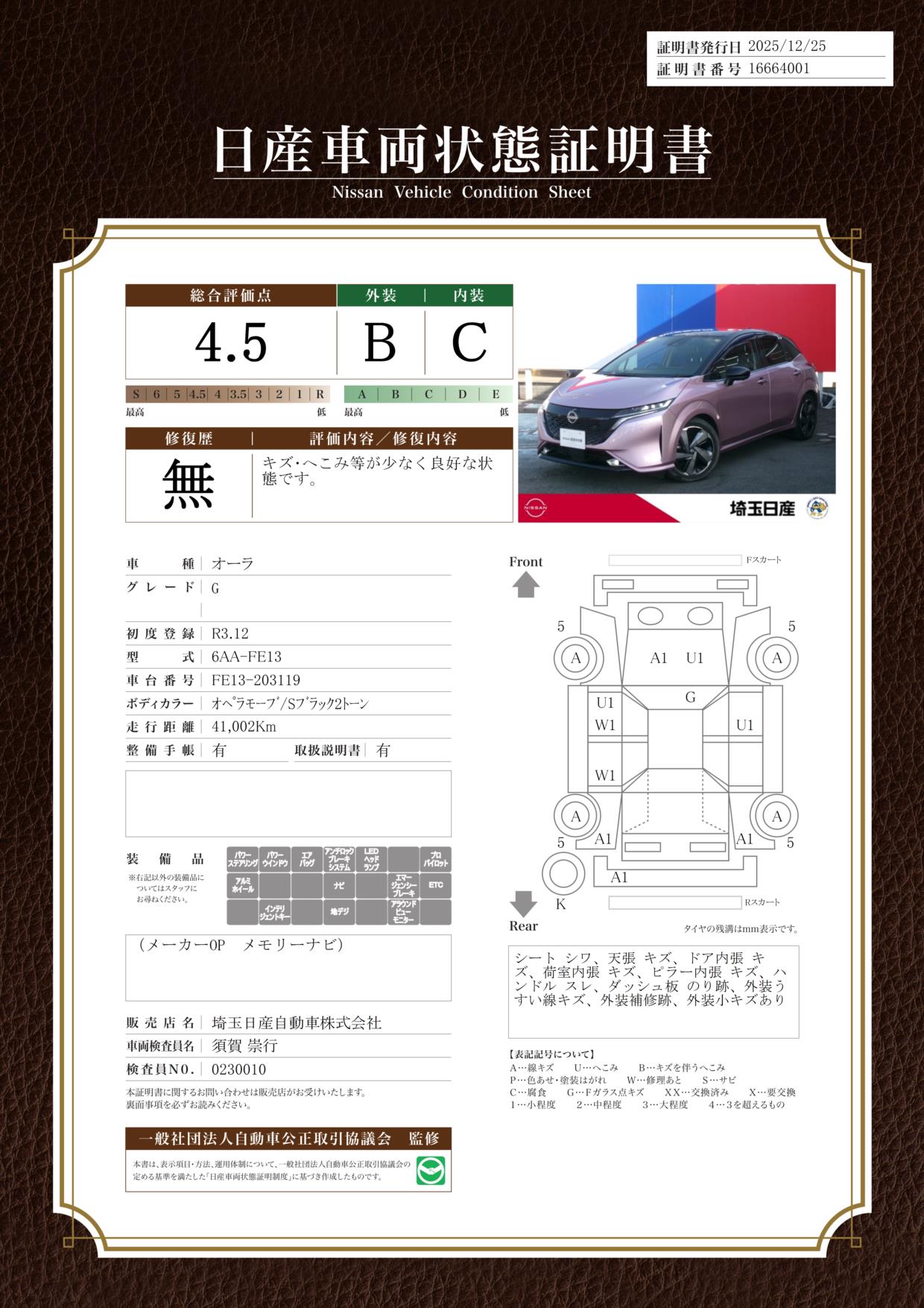 現状括弧書き内の年月まで車検有効期限が残っていますが、ご成約時に新しく車検を取り直します。なお取り直しの費用は車両価格に含まれています。